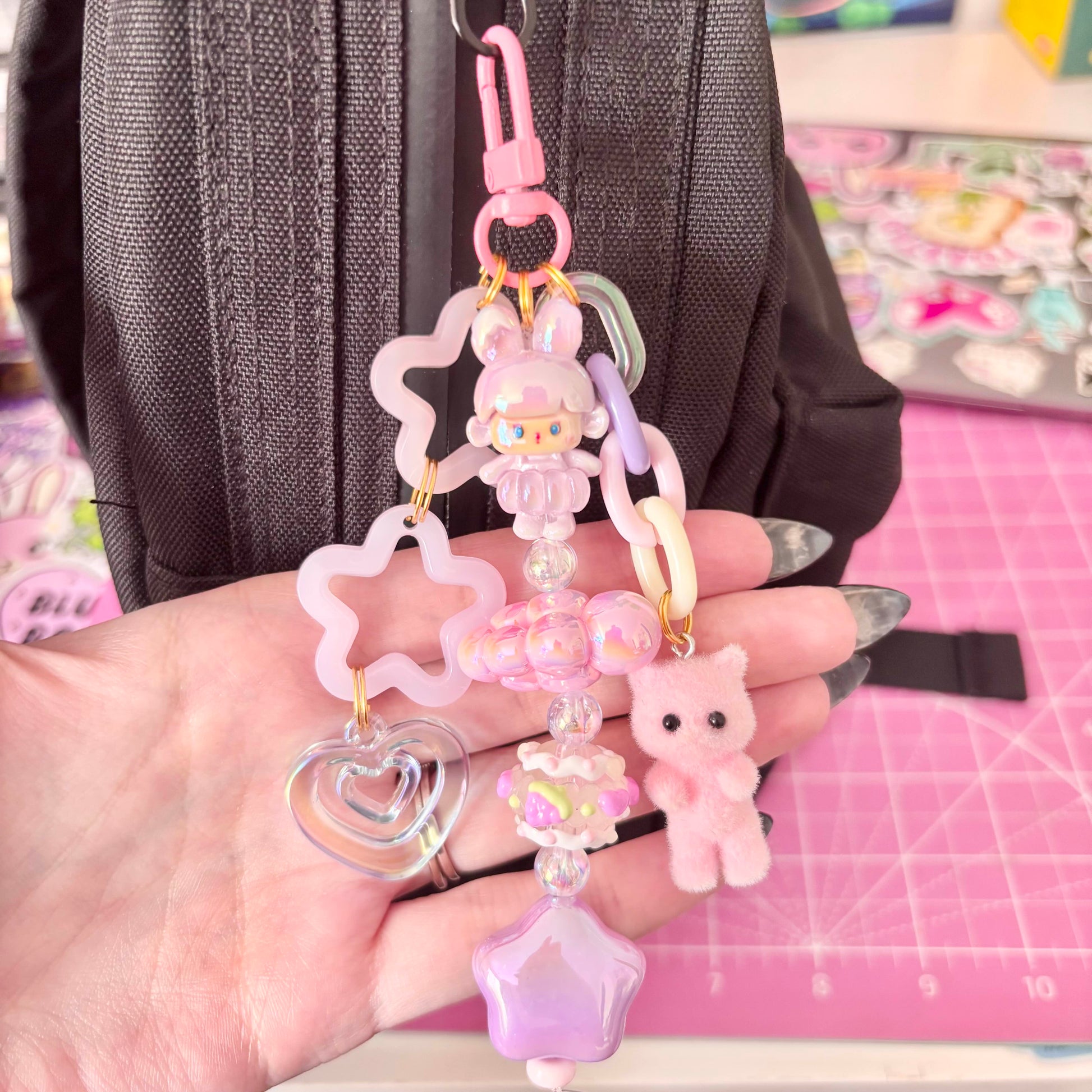 - High-quality iridescent acrylic and resin charms